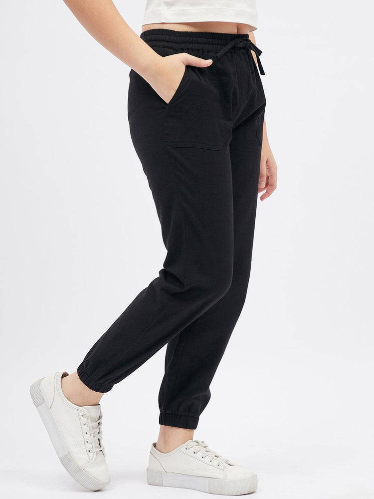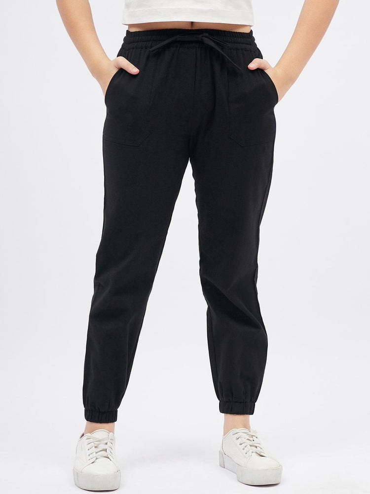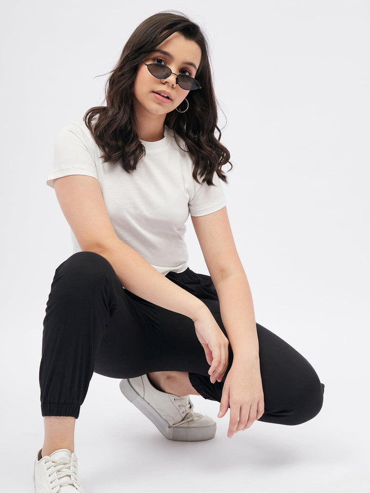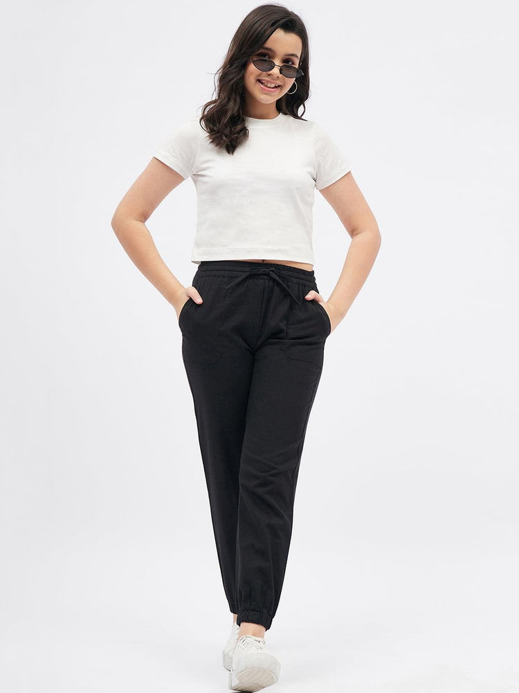 Black Solid Joggers for Girls