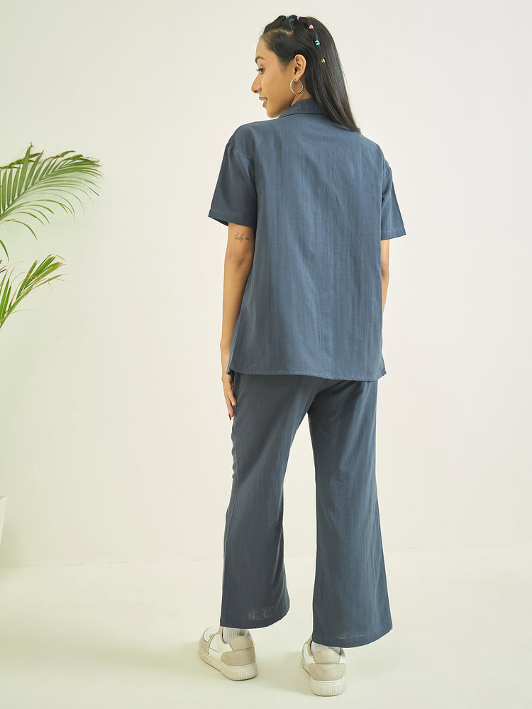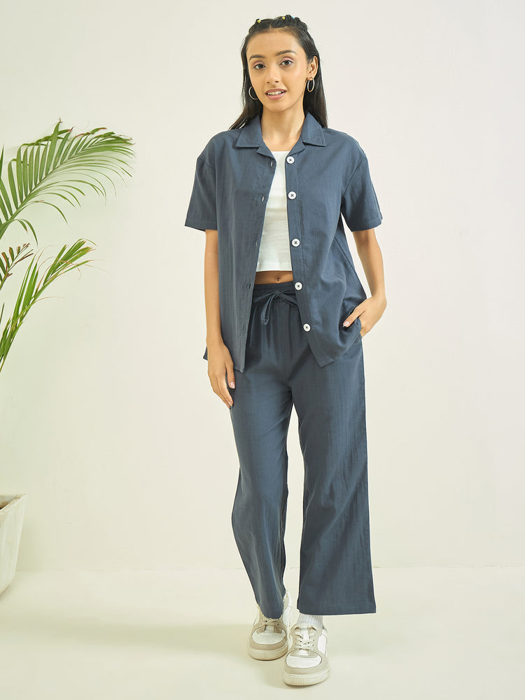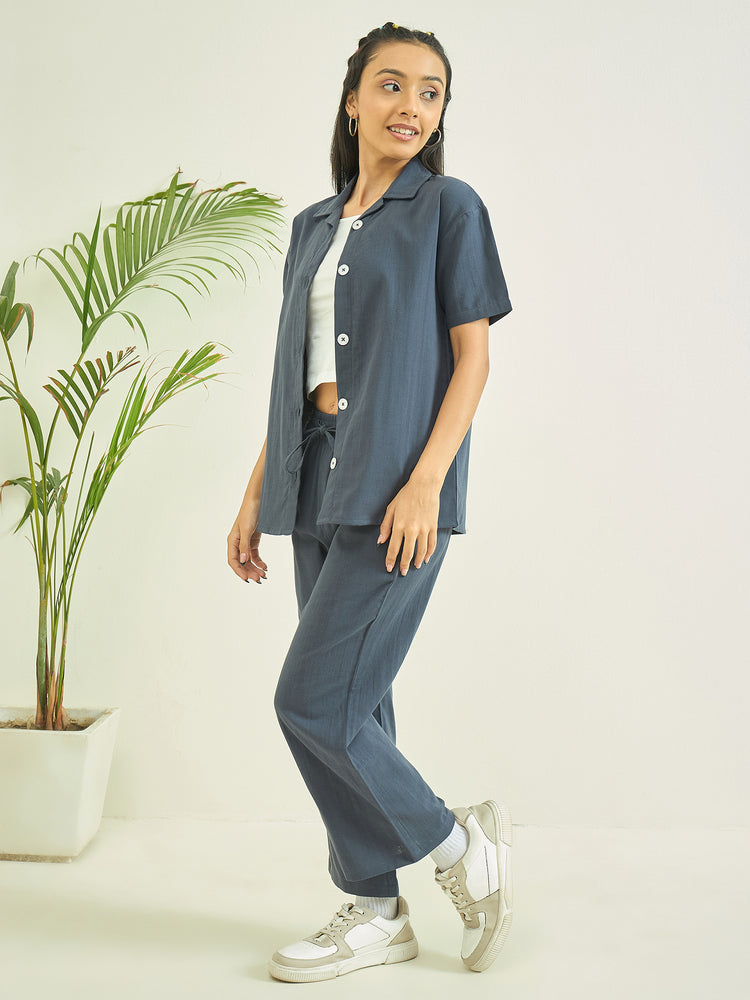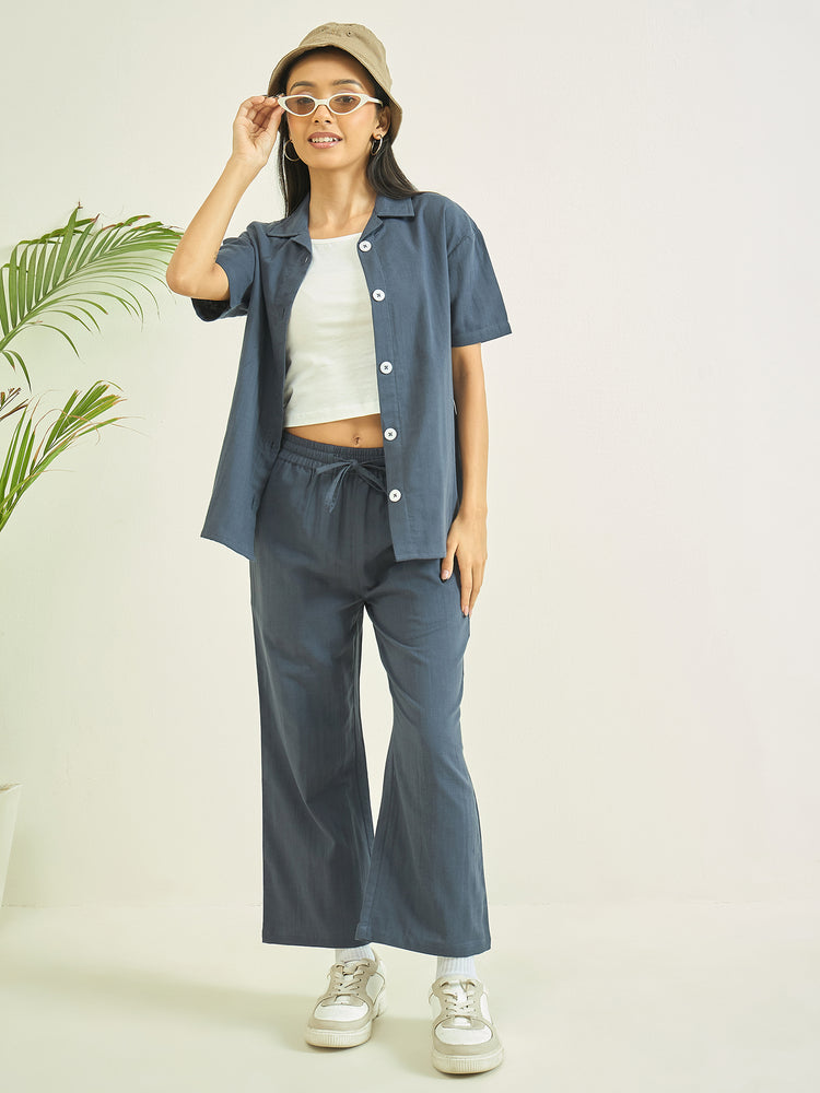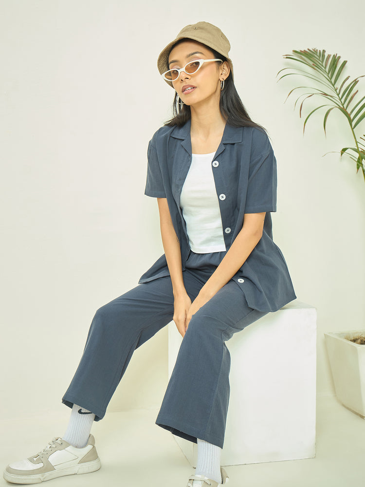 Grey short sleeve shirt comes with a white tang Top and a slip on Trousers