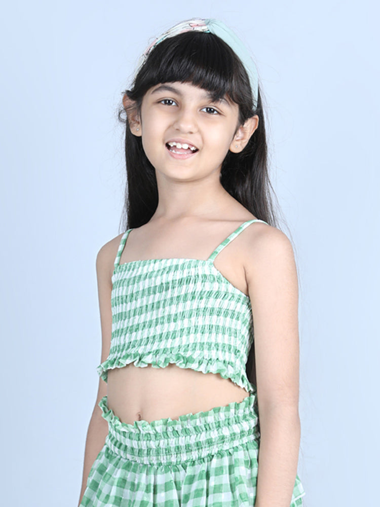 Girls Chiffon Crop Top (Green, Pack of 1)