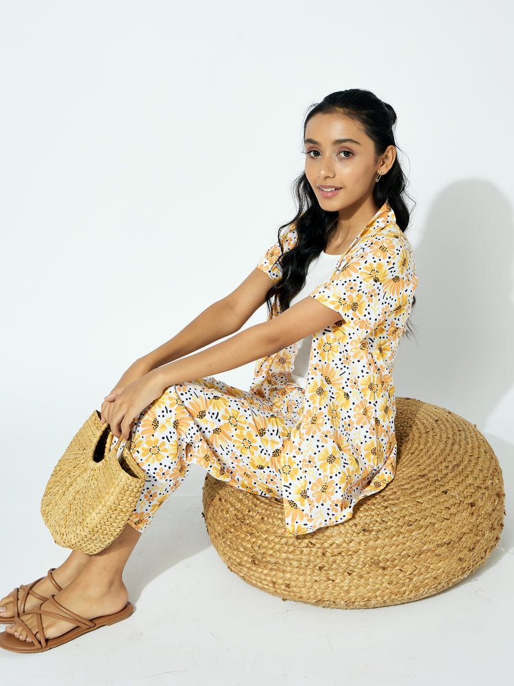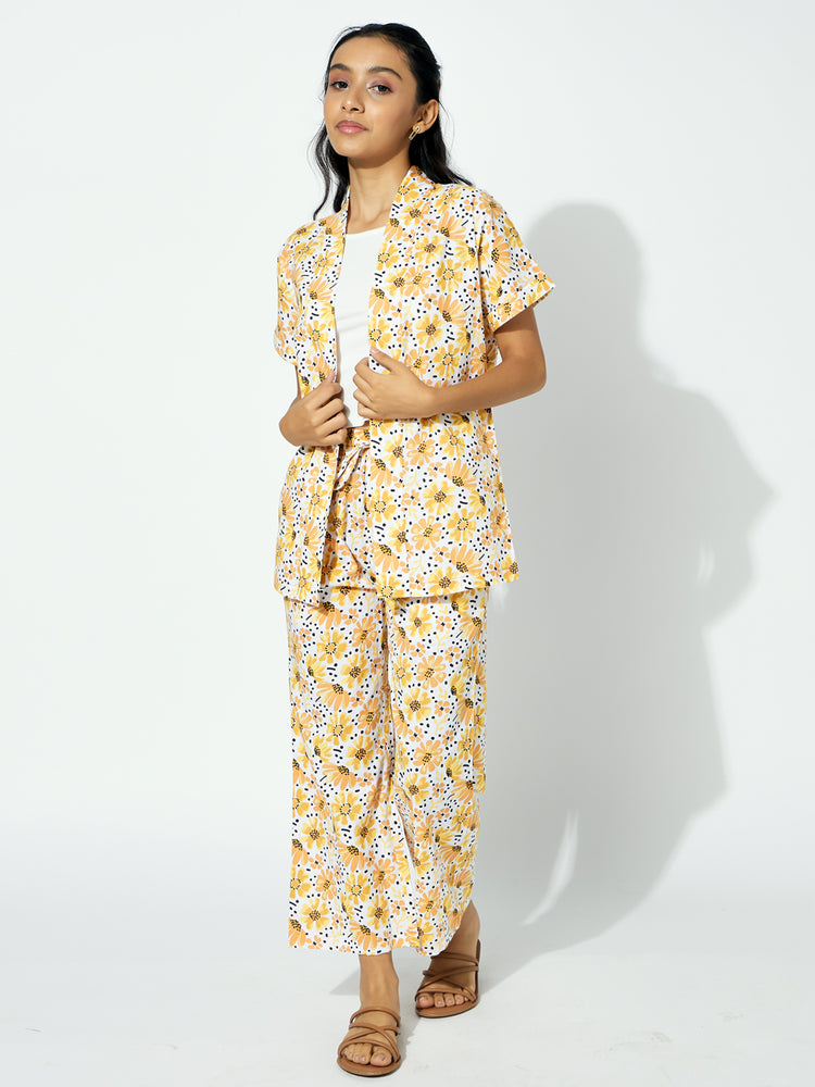 This stylish co-ord set includes a cotton t-shirt, matching trousers and a printed shrug, perfect for summer days. The lightweight cotton fabric is soft and breathable, providing maximum comfort for teen girls. Enjoy the trending look of a co-ord set without compromising on comfort – perfect for the summer months.