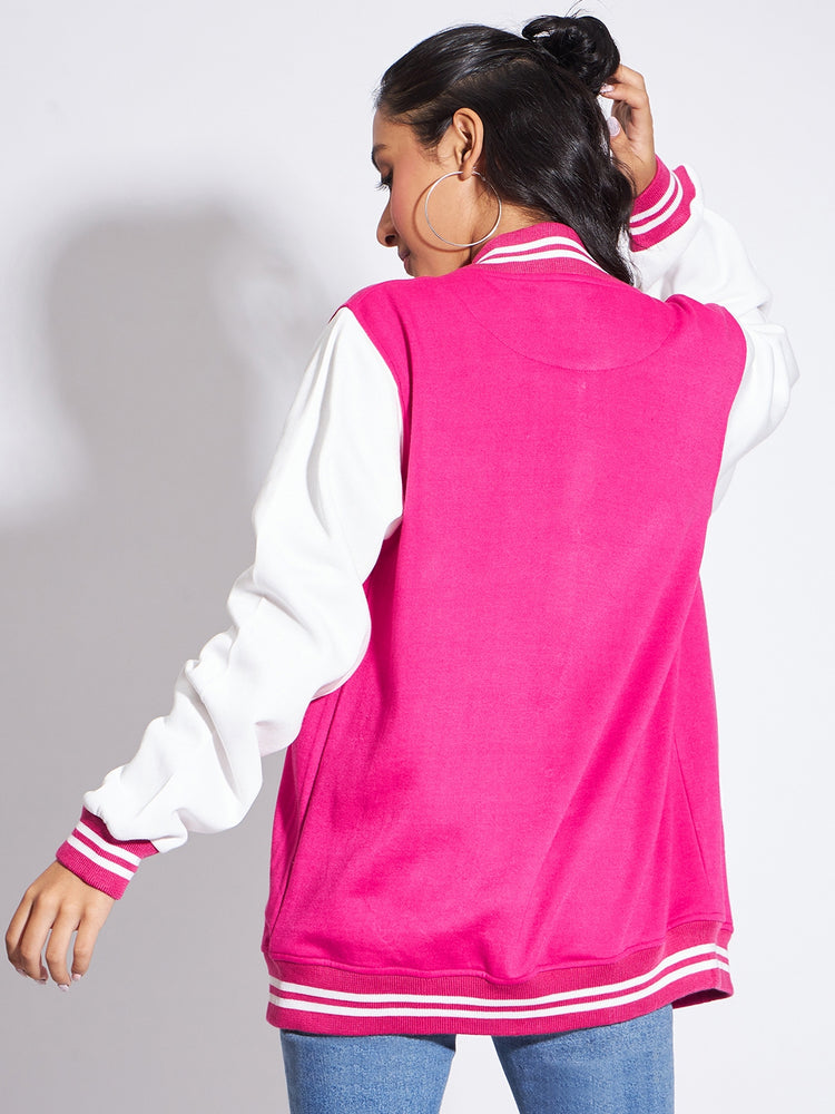 Our rani Pink varsity jacket is a perfect blend of comfort, style, and warmth. Its premium quality, classic varsity design, and vibrant blue hue make it a timeless piece for any wardrobe. Its snug fit ensures warmth while also allowing for freedom of movement, making it ideal for any occasion. Show off your teen's fashion-forward flair with this sleek and stylish jacket.