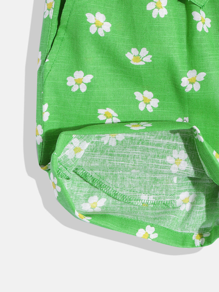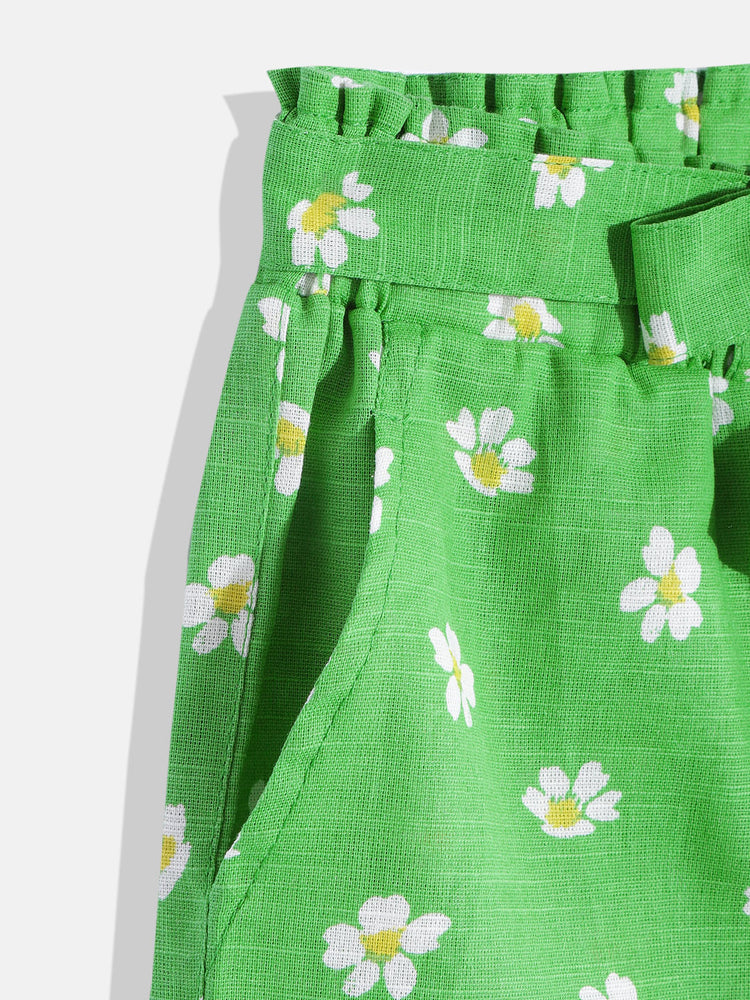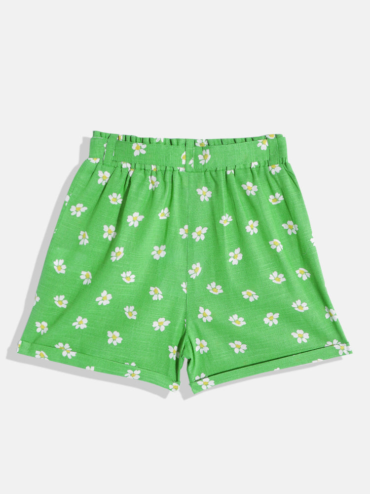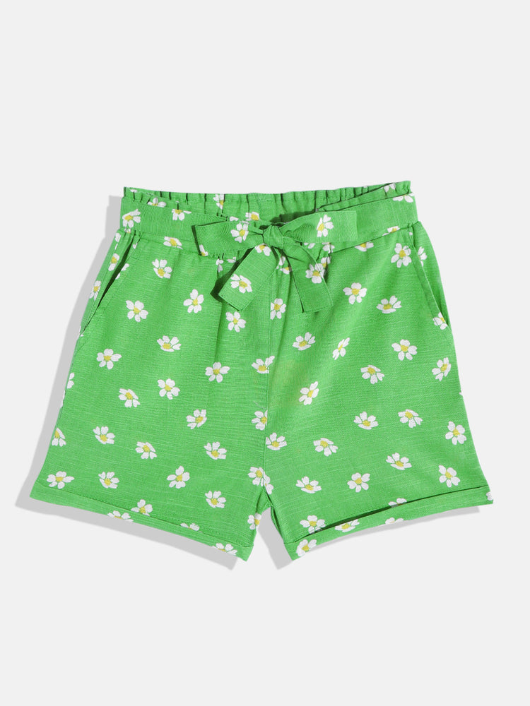 Short For Girls Casual Floral Print Pure Cotton (Green, Pack of 1)